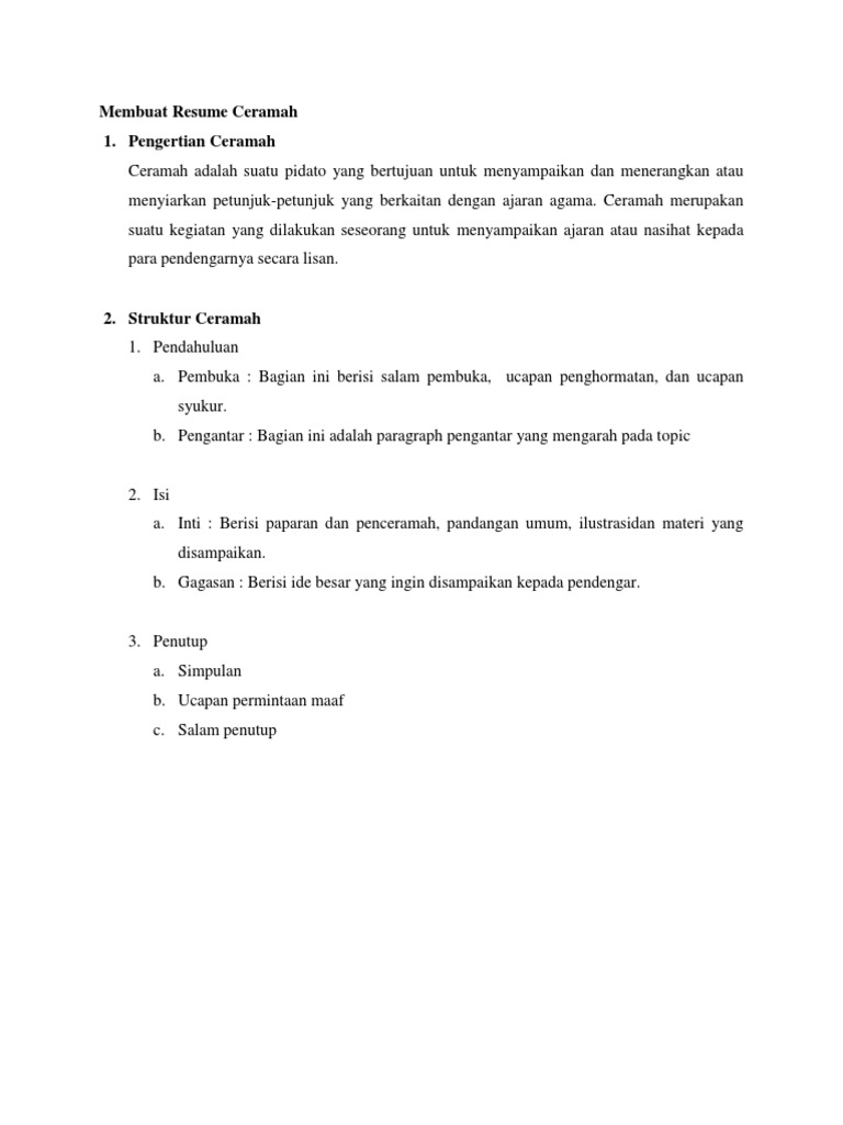 Penjelasan mengenai contoh resume jurnal buku makalah materi pribadi lamaran kerja artikel dan film terbaru dan terlengkap yang baik dan benar. Berikut ini adalah struktur teks ceramah yang baik dan benar. Padahal ceramah bukan semata bisa dilakukan atau berkaitan dengan agama lho.